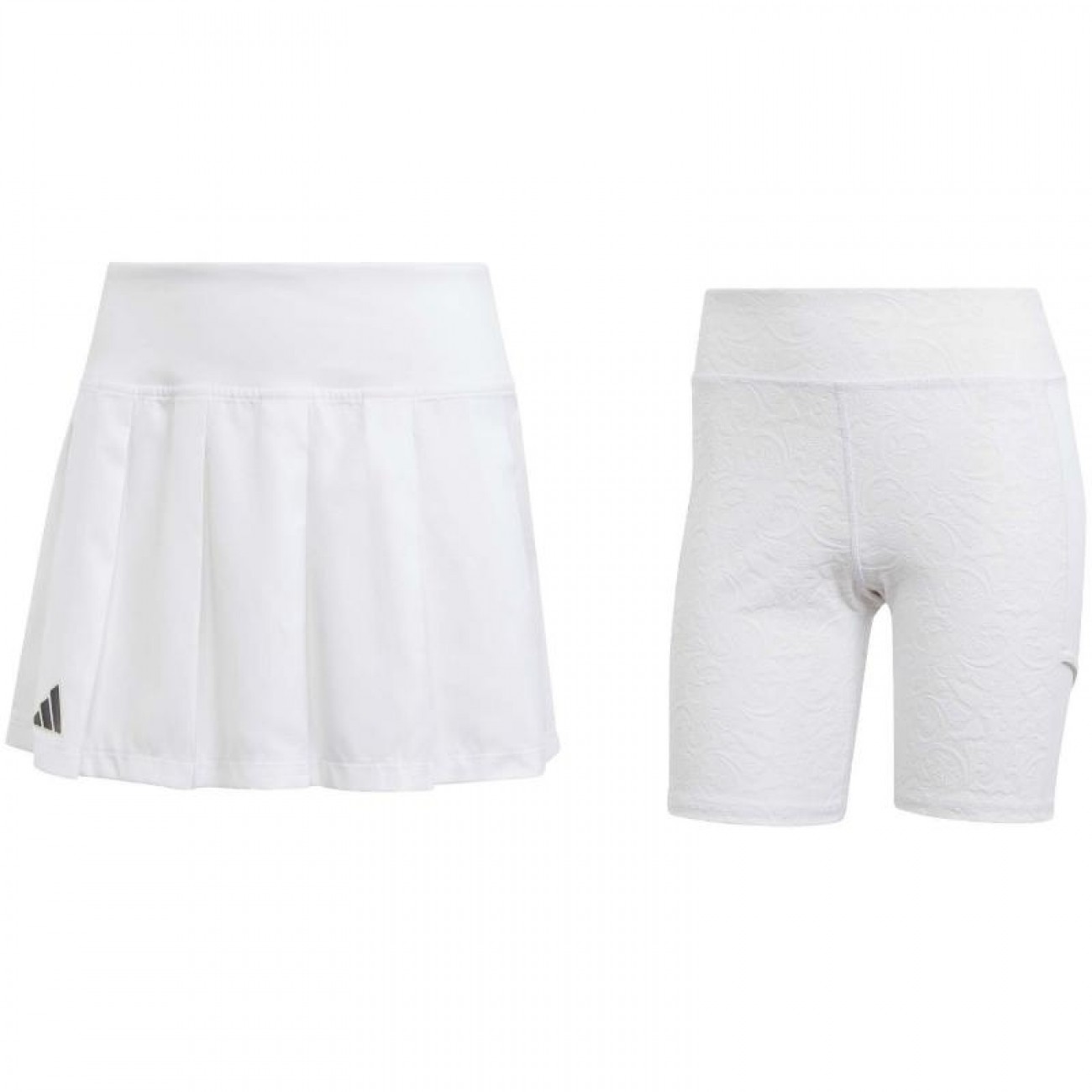 This adidas skirt, which is part of a collection that stands out for its elegant details, includes independent tights with a heraldic-inspired print.