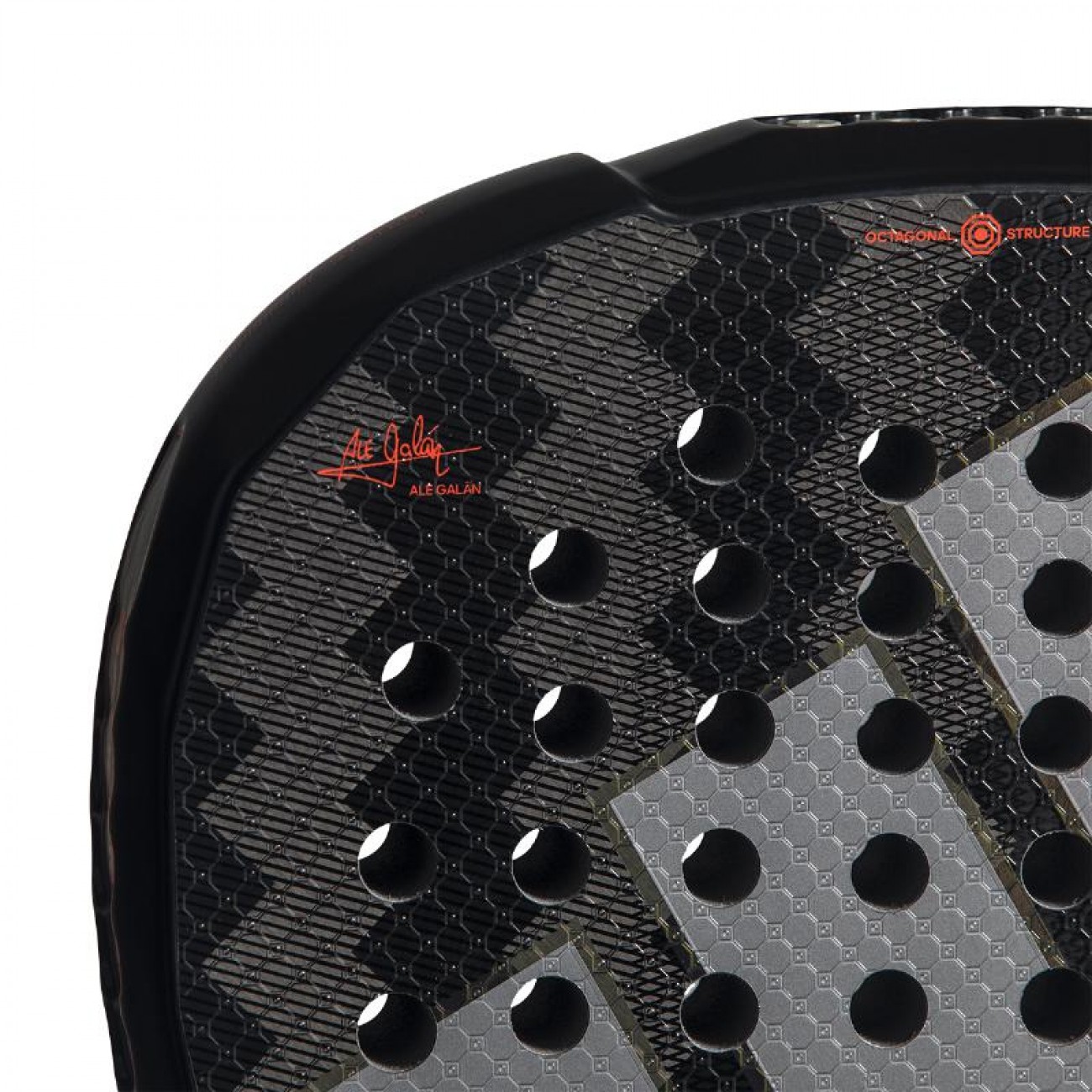 Octagonal Structure: Marco tubular de carbono con sección octogonal que reduce la torsión y proporciona golpes más firmes, estables y precisos.